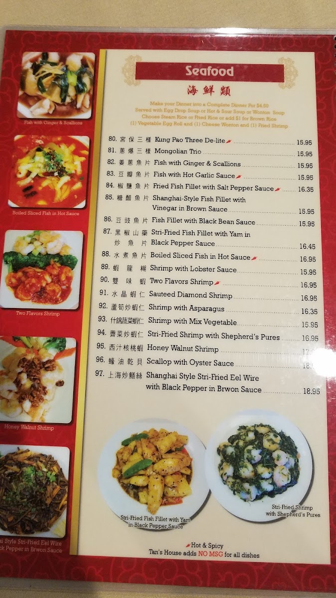 Shrimp with choice of sauce: black bean, curry, garlic, hot braised, kung pao, sizzling plate, or sweet sour.
